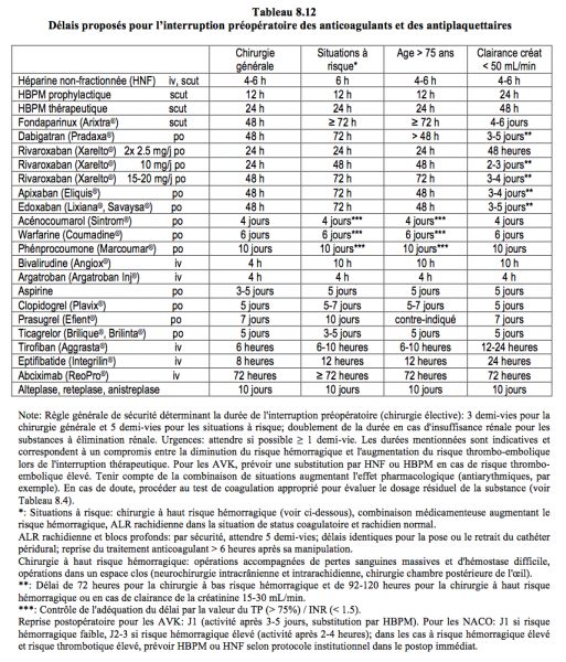 10. SIÉ P, SAMAMA CM, GODIER A, et al. Chirurgies et actes invasifs chez les patients traités au long cours par un anticoagulant oral anti-IIa ou anti-Xa direct. Propositions du Groupe d’intérêt en hémostase périopératoire (GIHP) et du Groupe d’études sur l’hémostase et la thrombose (GEHT). Ann Fr Anesth Réanim 2011 ; 30 : 645-50