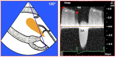 Vidéo: longue végétation dans un cas d'endocardite aortique entraînant une insuffisance, car les cuspides ne coaptent pas en diastole.