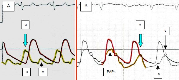 - Pression artérielle pulmonaire d’occlusion (PAPO);